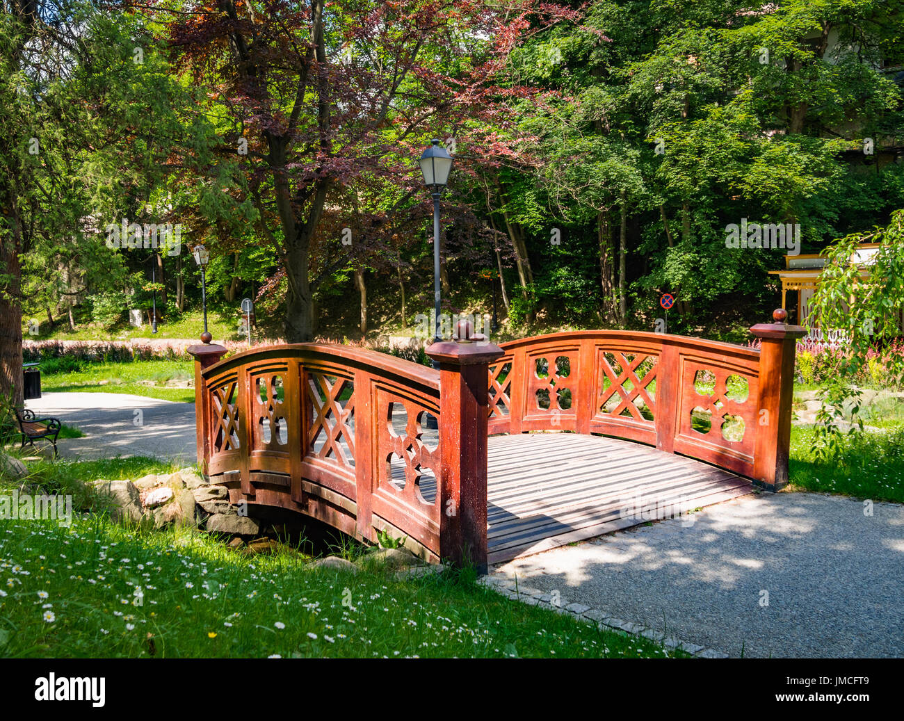 Small Wooden Garden Bridge Szczawnica Poland Stock Photo