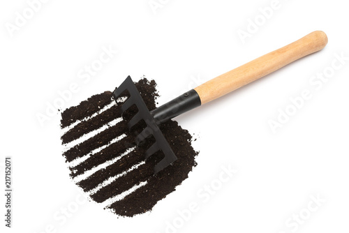 Pile Of Soil With Small Garden Rake Tools Stock Photo Download