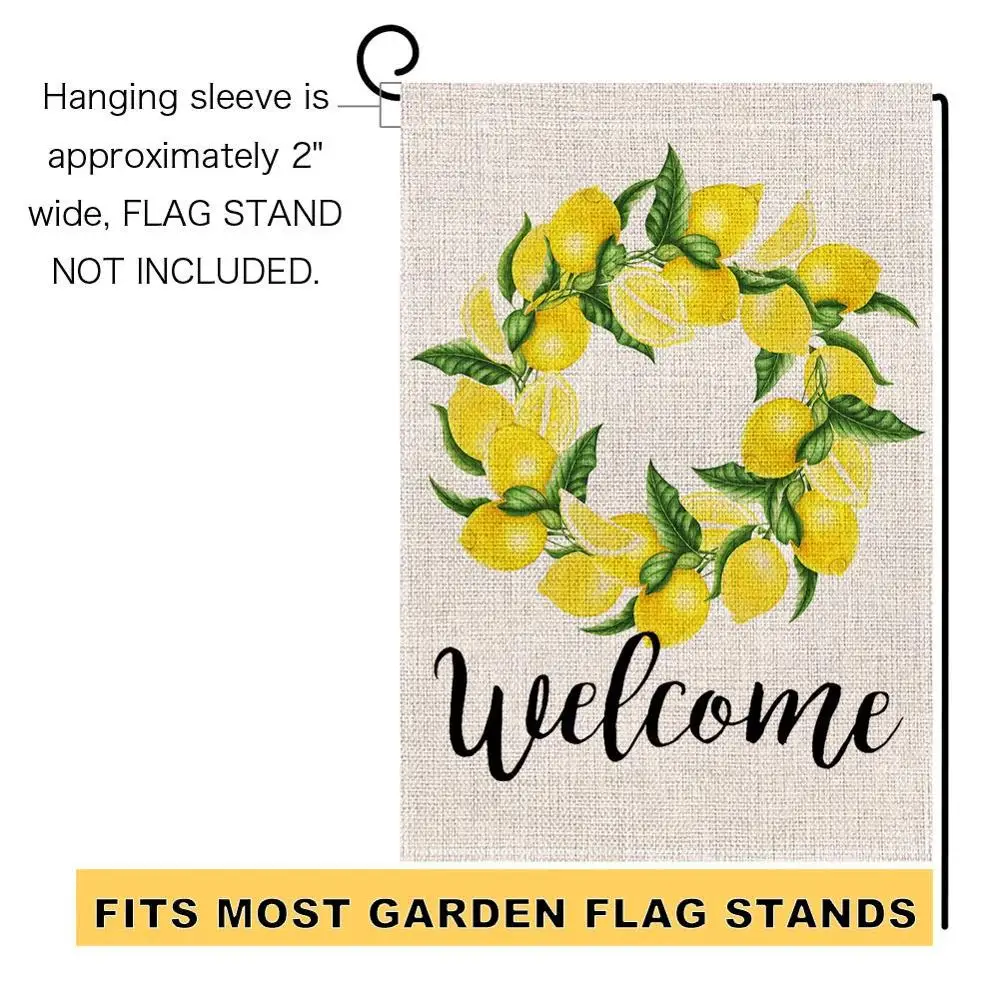 Welcome Lemon Wreath Small Garden Flag Vertical Double Sided 12 5