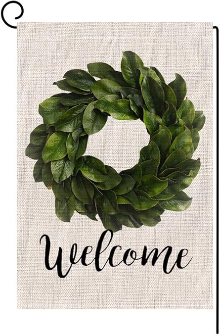 Amazon Com Welcome Magnolia Leaves Wreath Small Garden Flag
