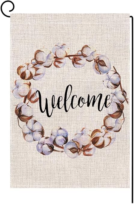 Amazon Com Welcome Cotton Wreath Small Garden Flag Vertical