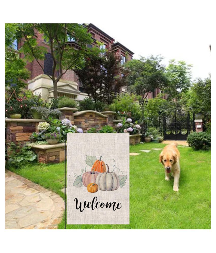 Welcomes Autumn Two Layers Of Burlap Pumpkin Small Garden Flag