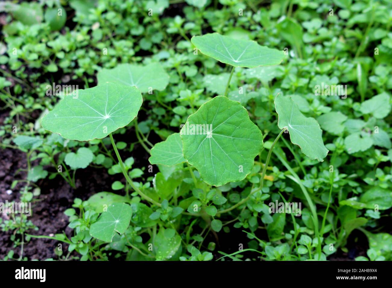 Image Of Small Garden Nasturtium Or Tropaeolum Majus Flowering