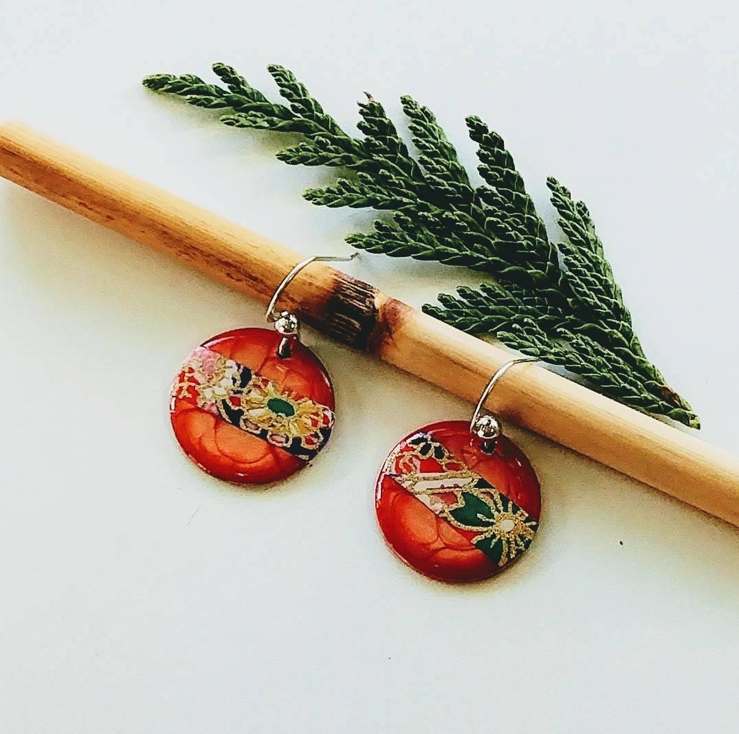 On Sale Small Hand Painted Zen Garden Disc Earring With Japanese