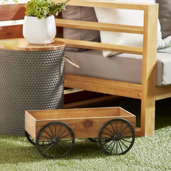 Wagon Planter Wood Flower Box Small Wooden Barrel Garden Cart With