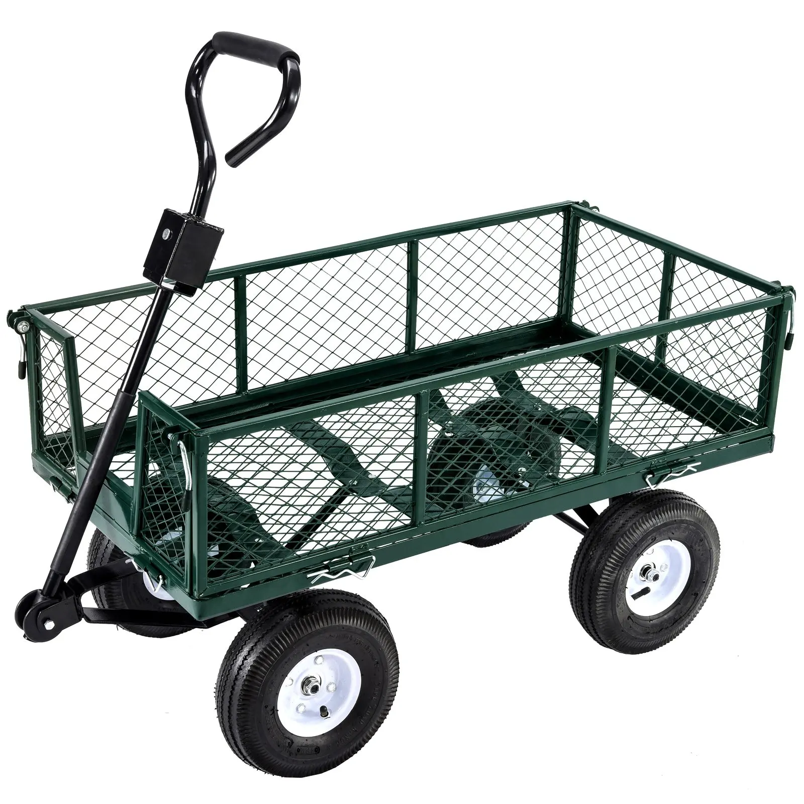 4 Wheel Steel Mesh Garden Cart Used Garden Wagon Cart Four Wheel
