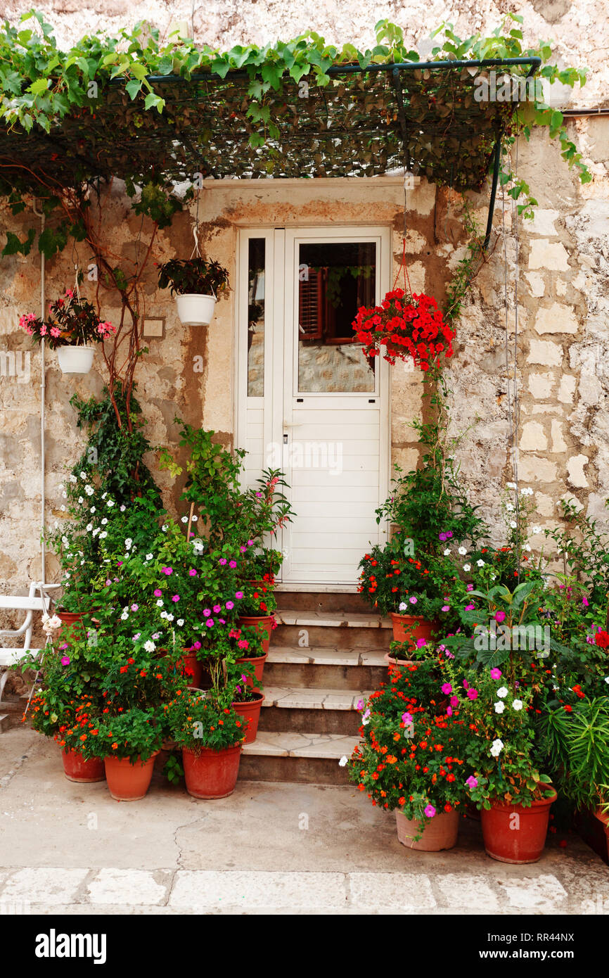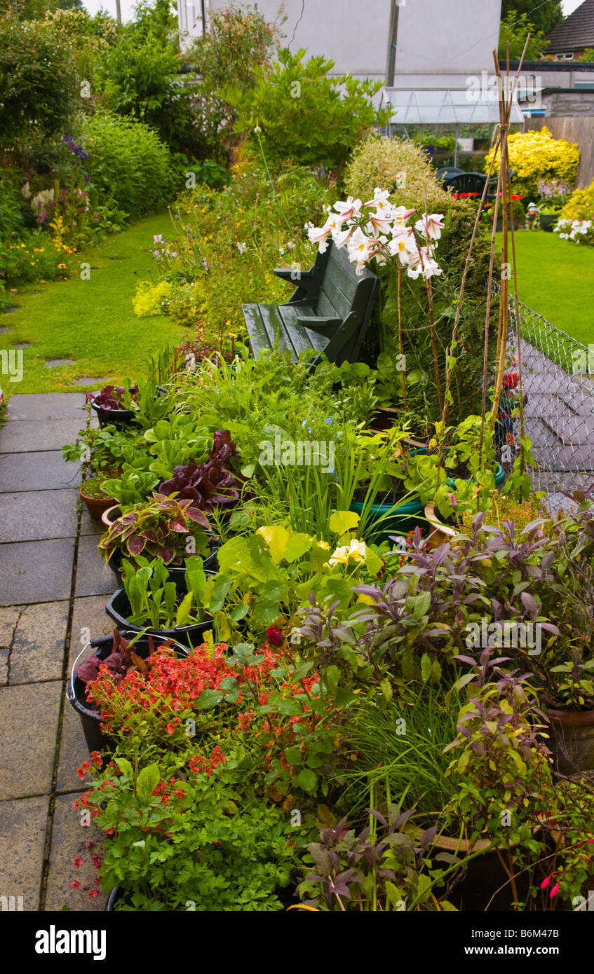 Small Urban Garden Growing Flowers Shrubs And Salad Crops In Stock
