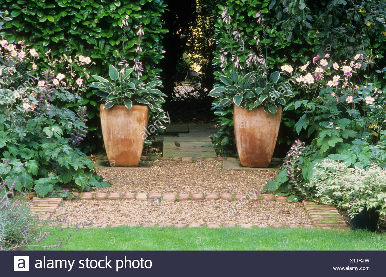 Potted Plants Flowers Tall Small Garden Path Summer Stock Image