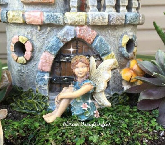 Fairy Garden Fairy Miniature Sitting Fairy Blue Fairy Small Etsy