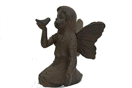 Amazon Com Cast Iron Small Garden Fairy Statue With Bird Angel