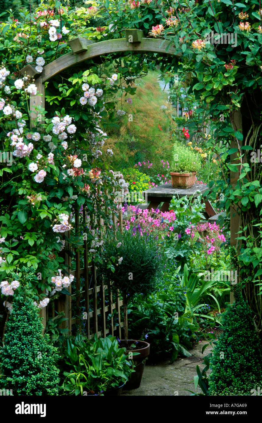 Cottage Garden Norfolk England Uk Climbers Arch Trellis Rose Rosa