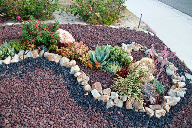 It is a very beautiful contemporary landscape featuring tones of succulents along with rocks and pebbles. Indoors patios office environments office buildings by a pool side front walk entrances outdoor patios and even inside homes. We have designer deana rae mcmillion to thank for chronicling and sharing her lawn to succulents transformation not only after installation but also over the ensuing three years.