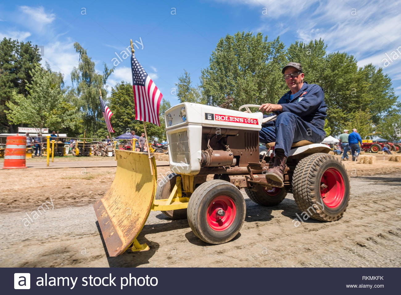 Man Driving A Small Garden Tractor During Parade Of Power At The