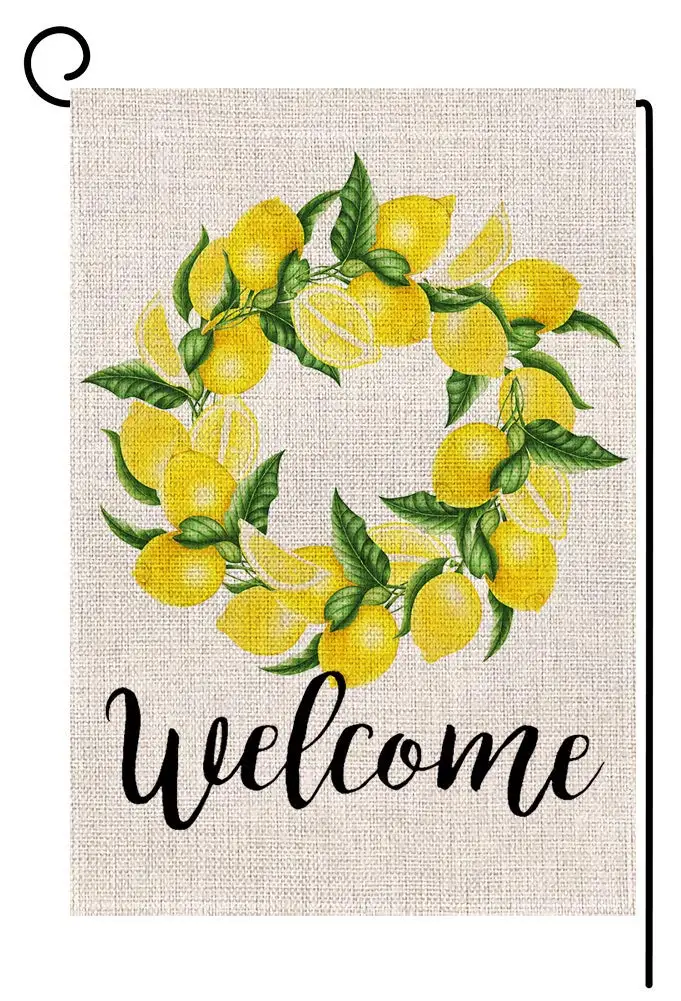 Welcome Lemon Wreath Small Garden Flag Vertical Double Sided 12 5