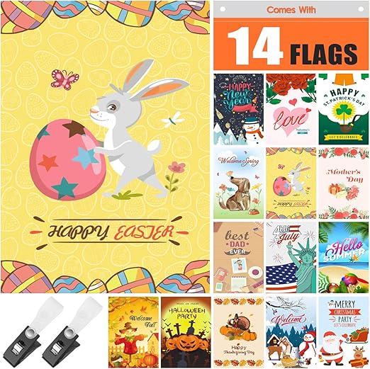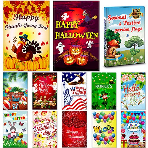 Seasonal Garden Flags Set 10 Pcs Bonus 2 Pcs Flags 12 X 18