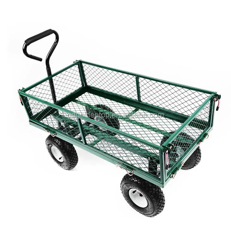 4 Wheel Steel Mesh Garden Cart Used Garden Wagon Cart Four Wheel