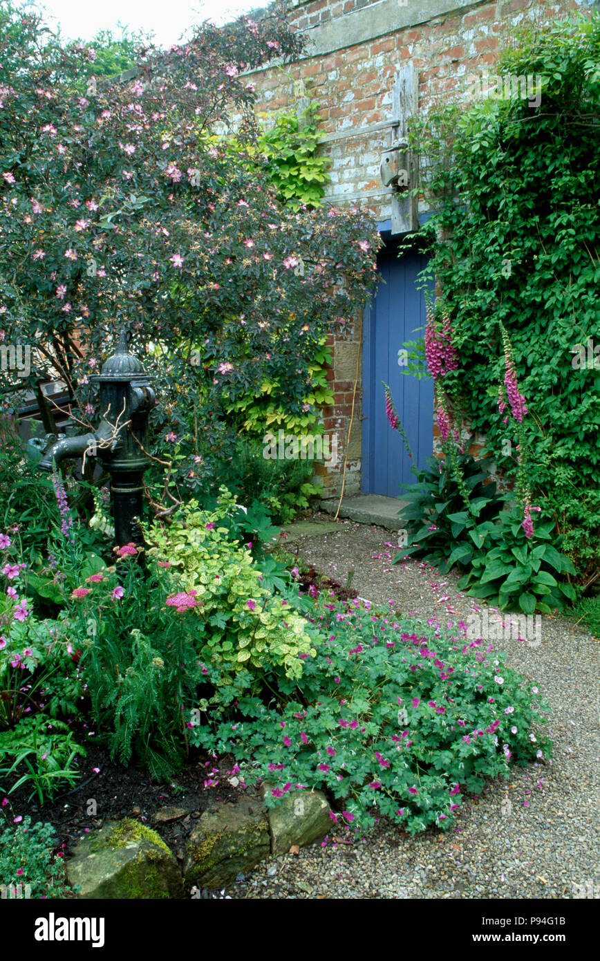 Old Garden Pump And Small Water Feature In Walled Country Garden