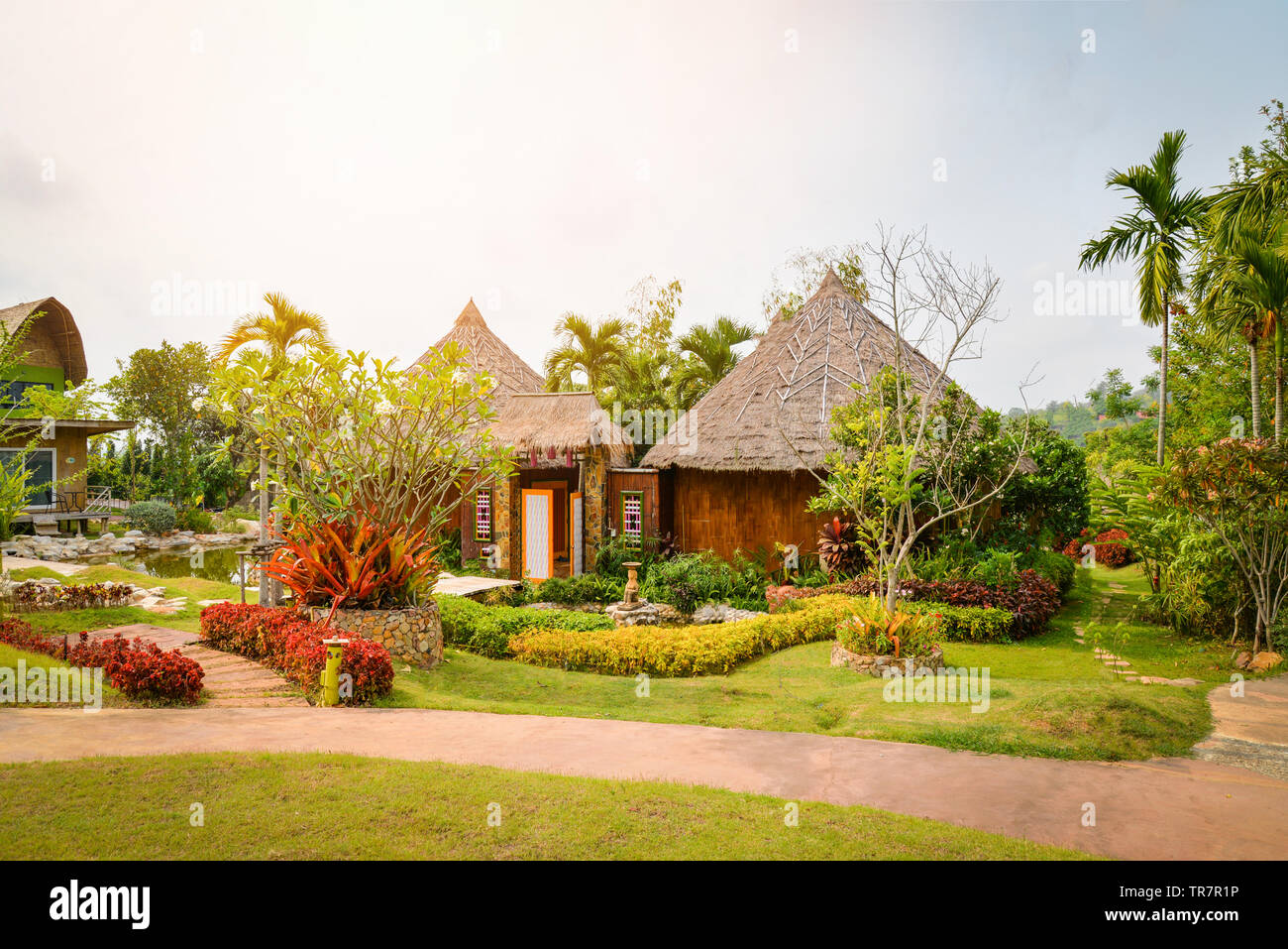 Plant And Flower Tree Decorate On Front Yard With Walkway And