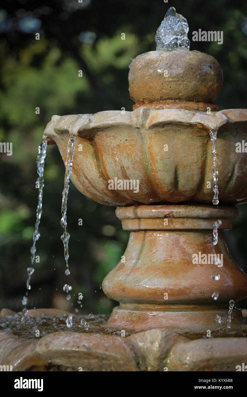Close Up Of The Top Tier Of A Garden Water Fountain With Water