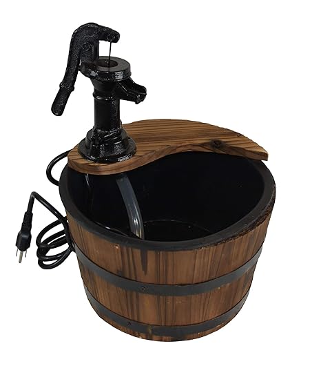 Wood Barrel With Pump Patio Water Fountain Small Garden Water