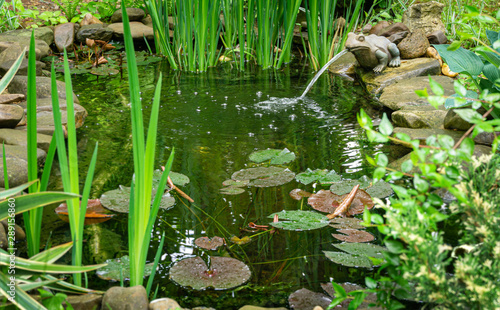 Beautiful Small Garden Pond With A Frog Shaped Fountain And Stone