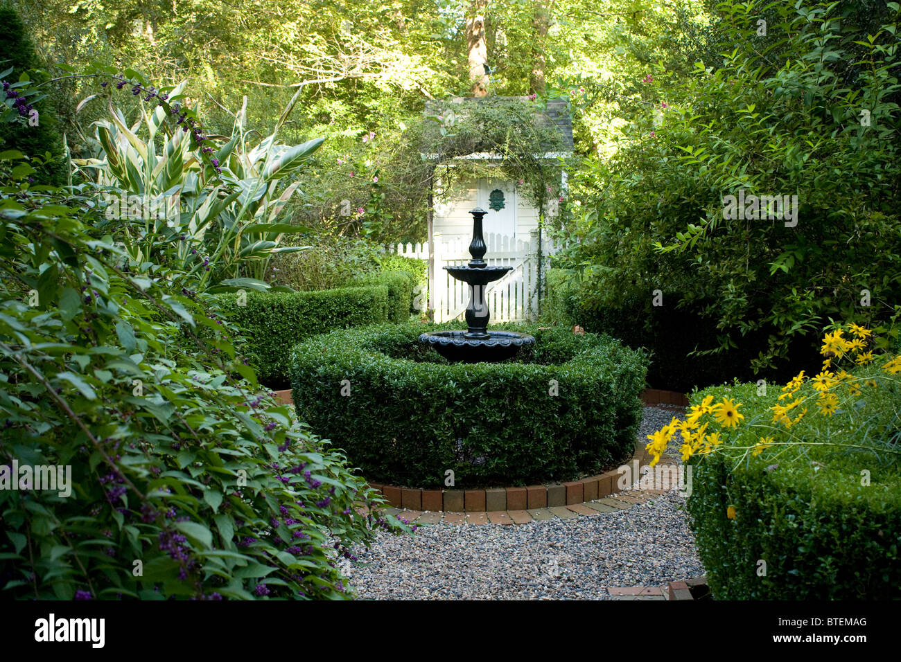 Small Garden Courtyard With A Fountain Water Feature Stock Photo