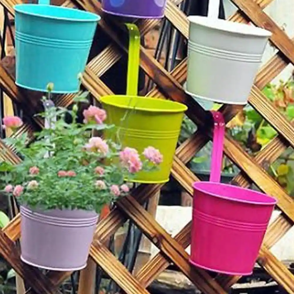 10 X Garden Metal Flower Pots Wall Hanging Bucket Herb Planter For