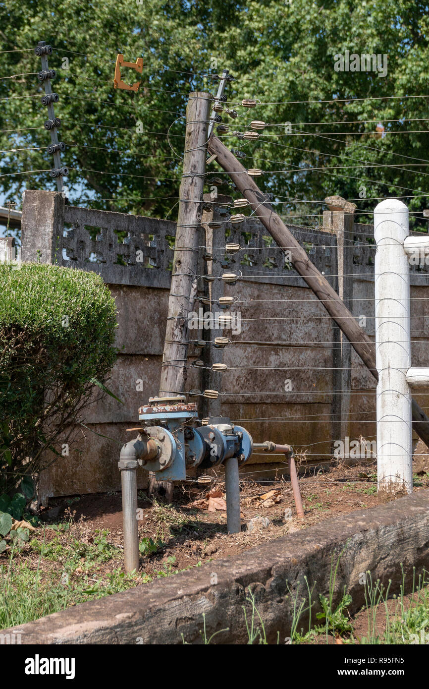 A Close Up View Of Electric Fencing And A Water Meter Outside A