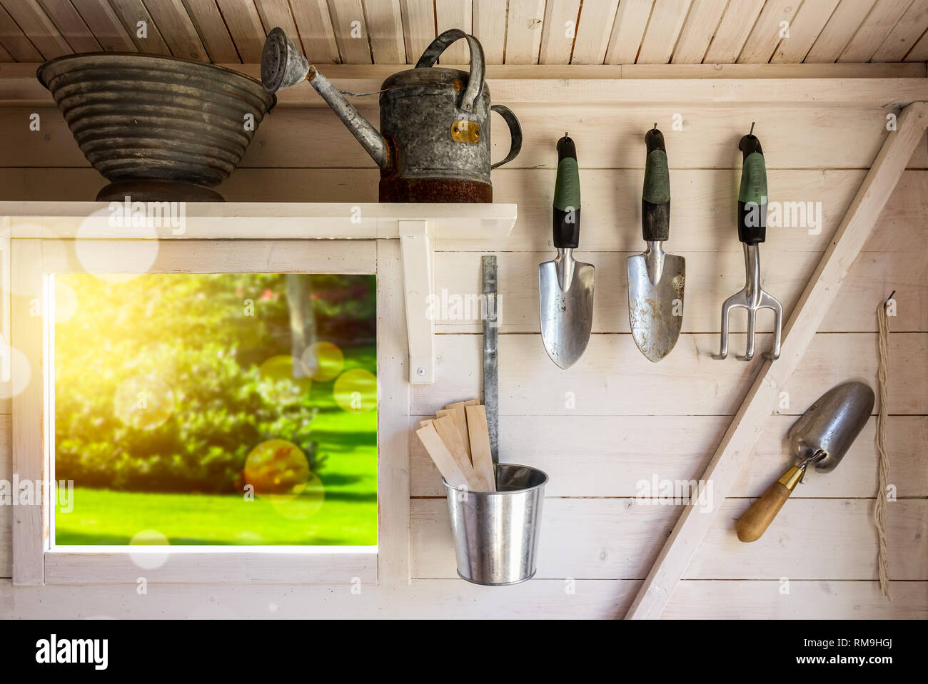 Garden Tools In A Small Storage Shed Stock Image Image Of Season